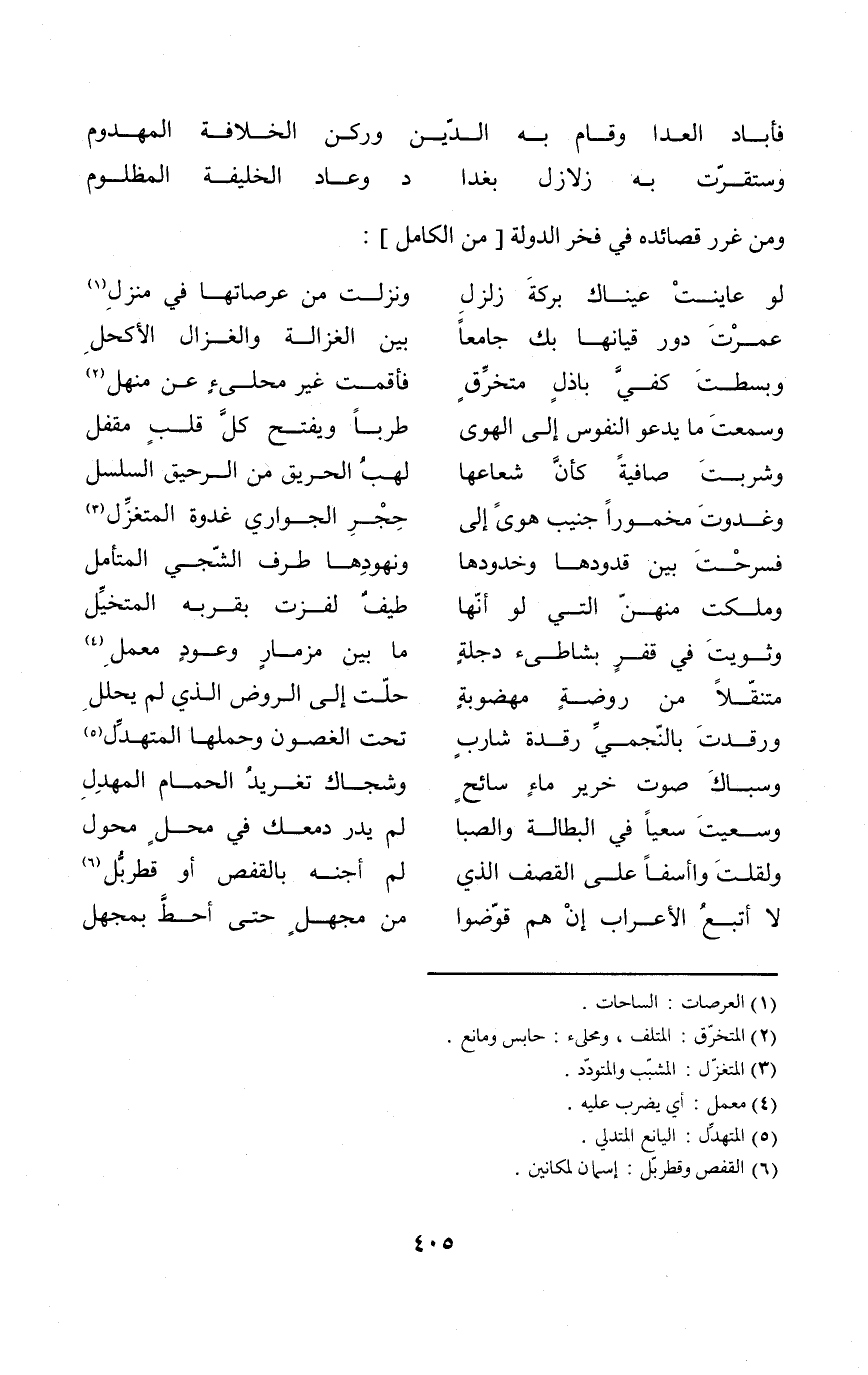 (وستقرت بِهِ زلازل بغدادا ... وَعَاد الْخَلِيفَة الْمَظْلُوم) // الْخَفِيف //