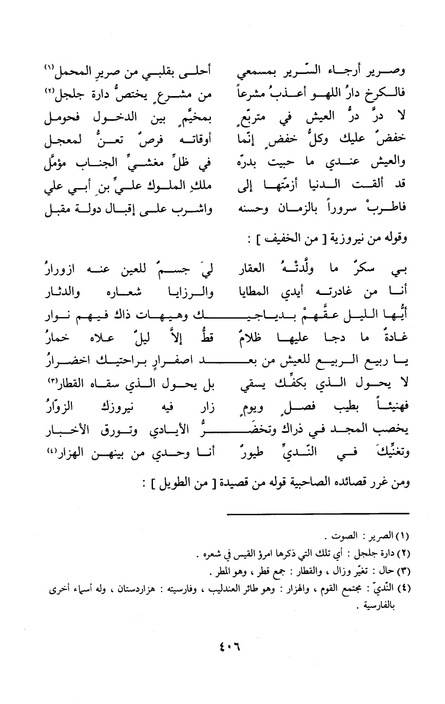 (فهنيئا بِطيب فصل وَيَوْم ... زار فِيهِ نيروزك الزوار)