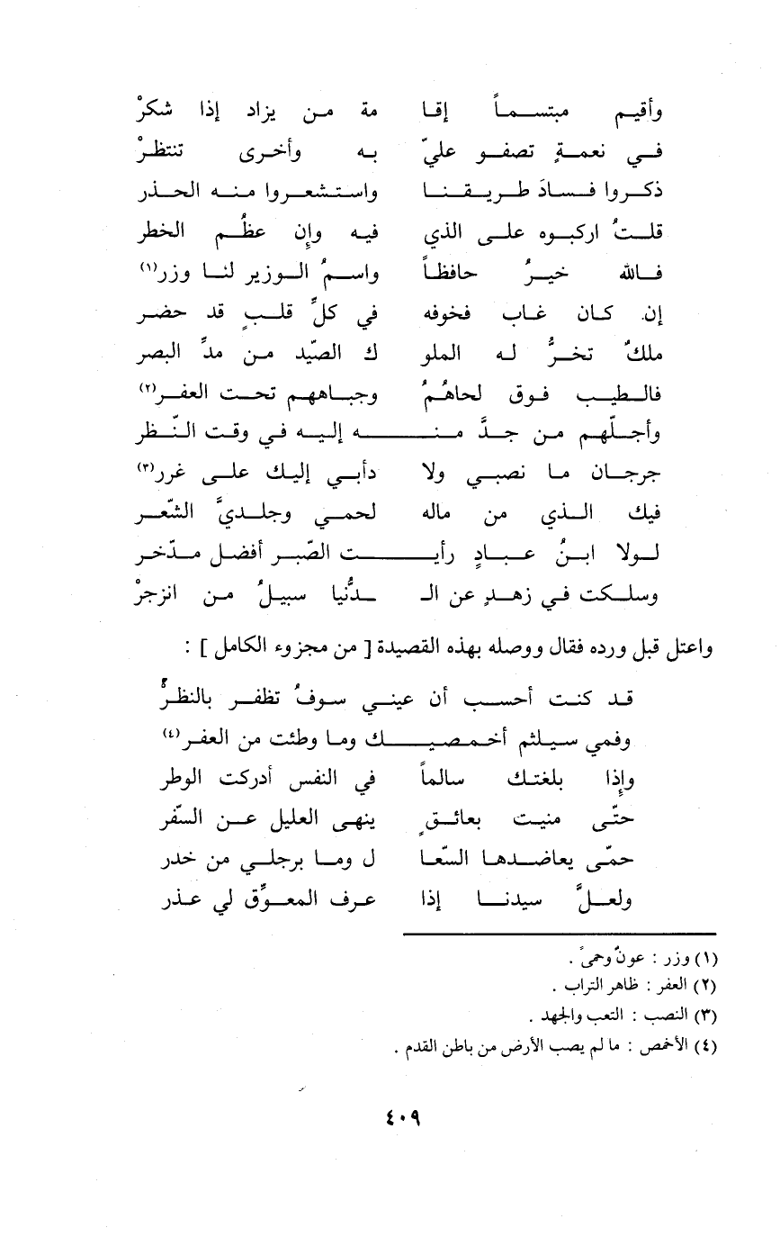 (وَلَعَلَّ سيدنَا إِذا ... عرف المعوق لي عذر) // مجزوء الْكَامِل //