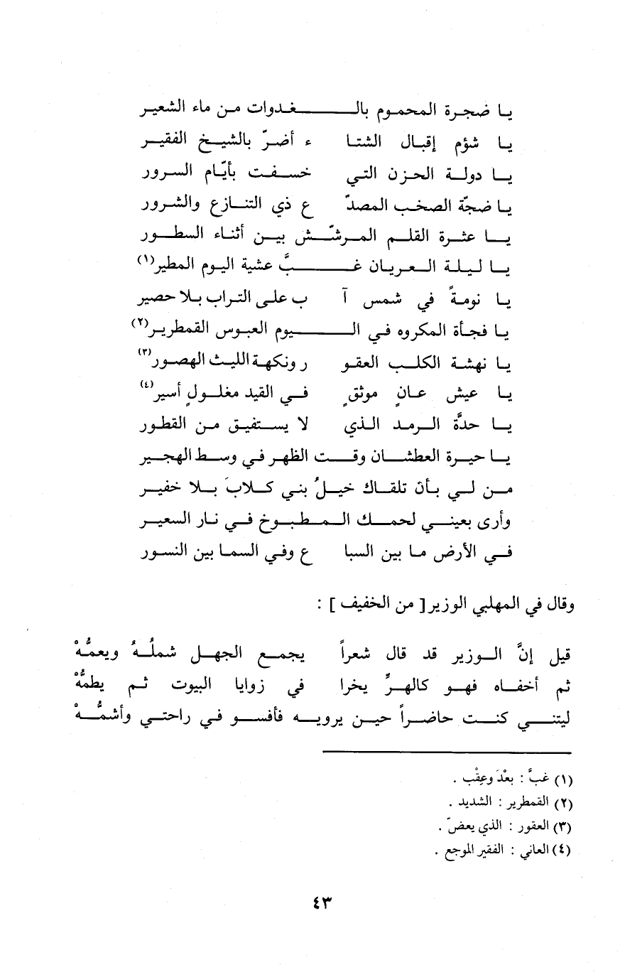 (يَا شُؤْم إقبال الشتَاء ... أضرّ بالشيخ الْفَقِير)