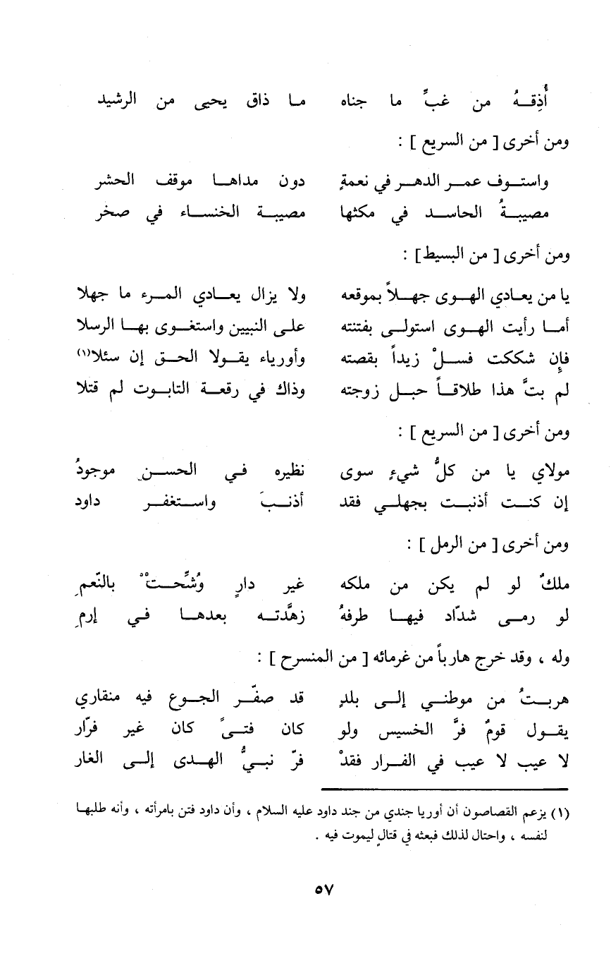 (إِن كنت أذننبت بجهلي فقد ... أذْنب واستغفر دَاوُد) // السَّرِيع //