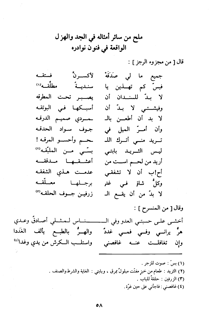 (لَا بُد من أَن يَقع ... الزرفين جَوف الحلقه) // مجزوء الرجز //