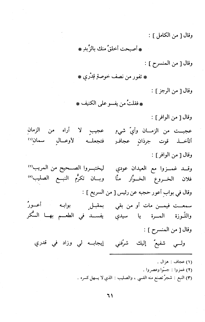 (عجبت من الزَّمَان وَأي شَيْء ... عَجِيب لَا أرَاهُ من الزَّمَان)