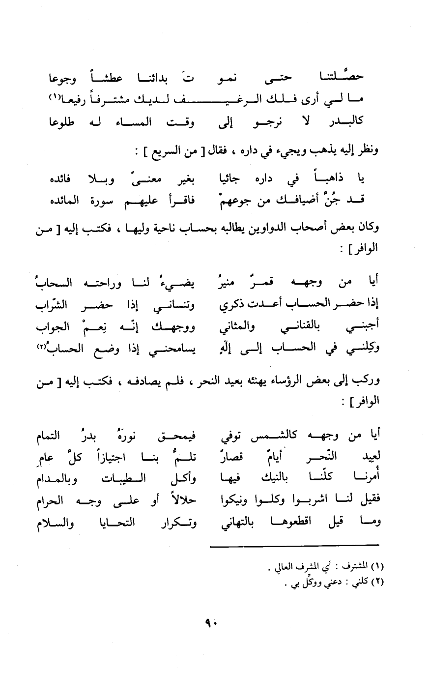 (وكلني فِي الْحساب إِلَى إِلَه ... يسامحني إِذا وضع الْحساب) // الوافر //