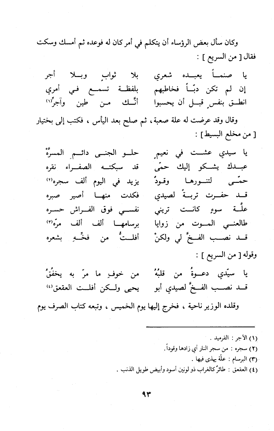 (قد نصب الفخ لصيدي أَبُو ... يحيى وَلَكِن أفلت العقعق) // السَّرِيع //