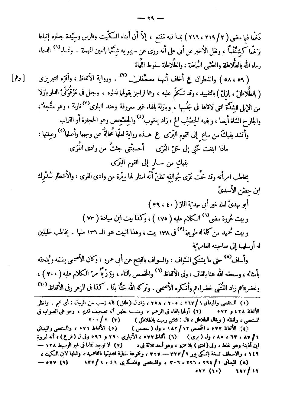 يخاطب امرأته وقد حلت عري جوالقه تظن أنه امتار لها ميرة من وادي القرى، والأشطار لمدرك ابن حصن الأسدي أبو مهدي لعله غير أبي مهدية المار وبيت عروة مضى الكلام عليه، وكذا بيت ابن ميادة وبيت حميد من كلمة له طويلة في 138 بيت، وهذا البيت هو ال 136 منها. يخاطب خليلين له أرسلهما إلى صاحبته العامرية وأساف حتى ما يشتكى السواف، والسواف بالفتح عن أبي عمرو، وكان الأصمعي يضمه ويلحقه بأمثاله، وسحقه الله هنا بالقاف، وفي الألفاظ والمخصص بالتاء، وورياً مر الكلام عليه، وغضراءاهم زاد القتبي خضراءهم وأنكره الأصمعي. وتركه الله حتاً بتا. كذا في المزهر وفي الألفاظ