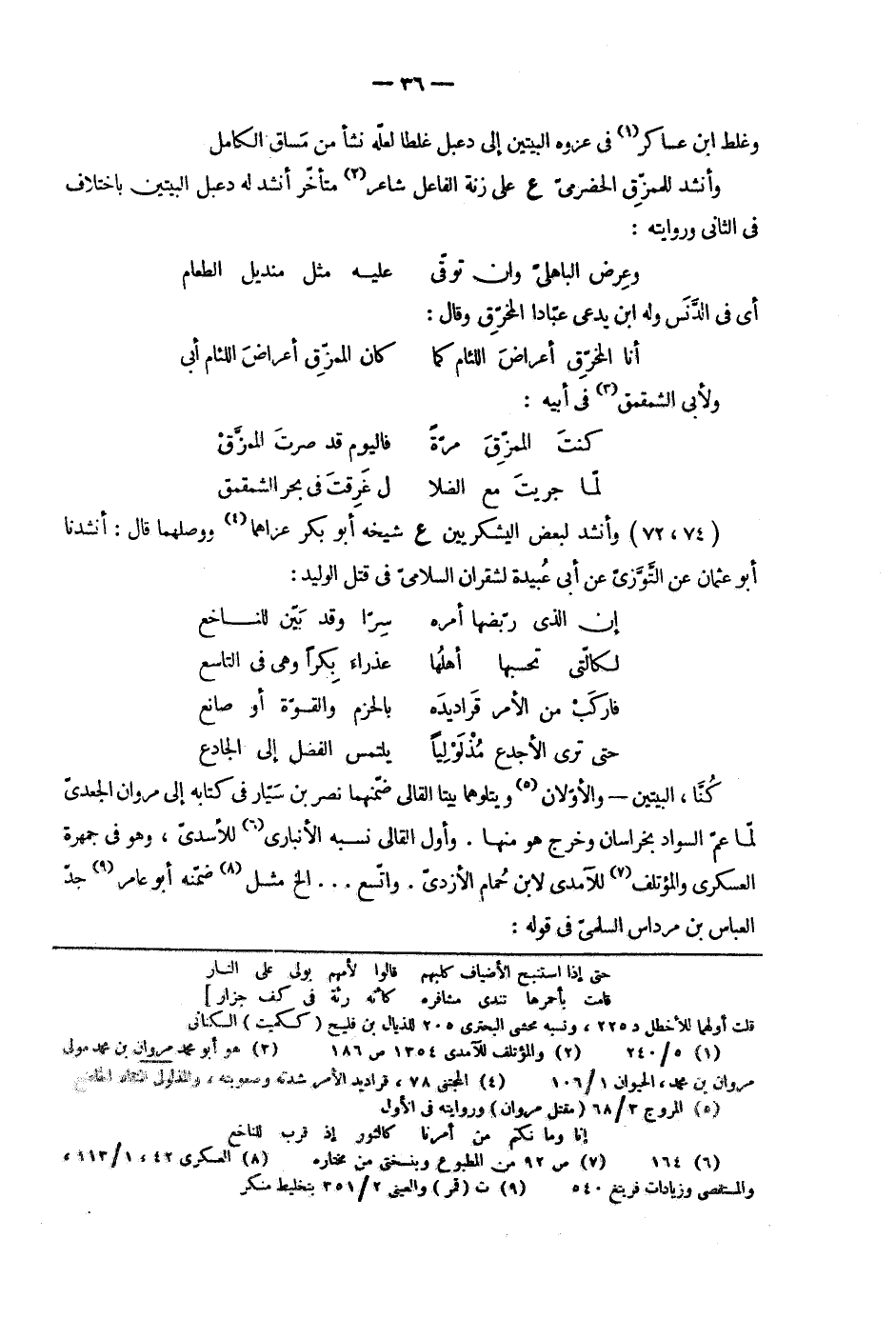 وغلط ابن عساكر في عزوه البيتين إلى دعبل غلطا لعله نشأ من مساق الكامل وأنشد للممزق الحضرمي ع على زنة الفاعل شاعر متأخر أنشد له دعبل البيتين باختلاف في الثاني وروايته: