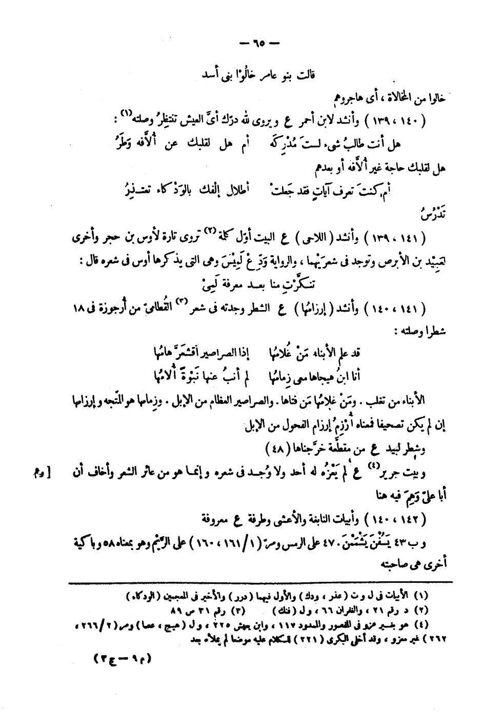 الأبناء من تغلب. ومن غلامها من فتاها. والصراصير العظام من الإبل، وزمامها هو المتجه وإرزامها إن لم يكن تصحيفا فمعناه أرزم إرزام الفحول من الإبل وشطر لبيد ع من مقطعة خرجناها وبيت جرير ع لم يعزه له أحد ولا وجد في شعره وإنما هو من عائر الشعر وأخاف أن أبا علي وهم فيه هنا وأبيات النابغة الأعشي وطرفة ع معروفة وب43 يسفن يشممن. 47 على الرمس ومر على الريم وهو بمعناه 58 وباكية أخرى هي صاحبته
