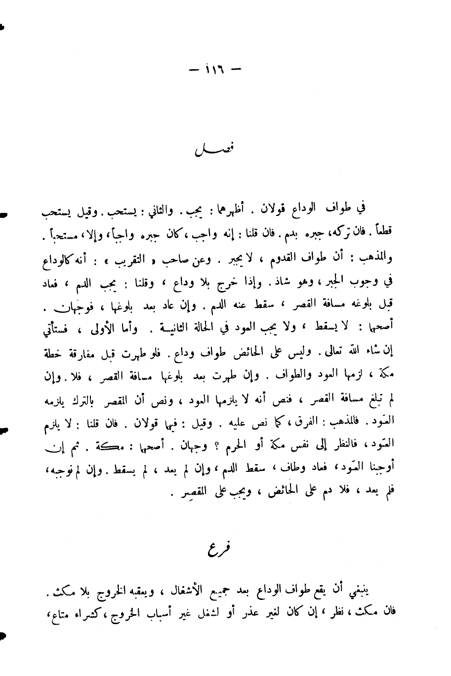فَصْلٌ فِي طَوَافِ الْوَدَاعِ قَوْلَانِ.
