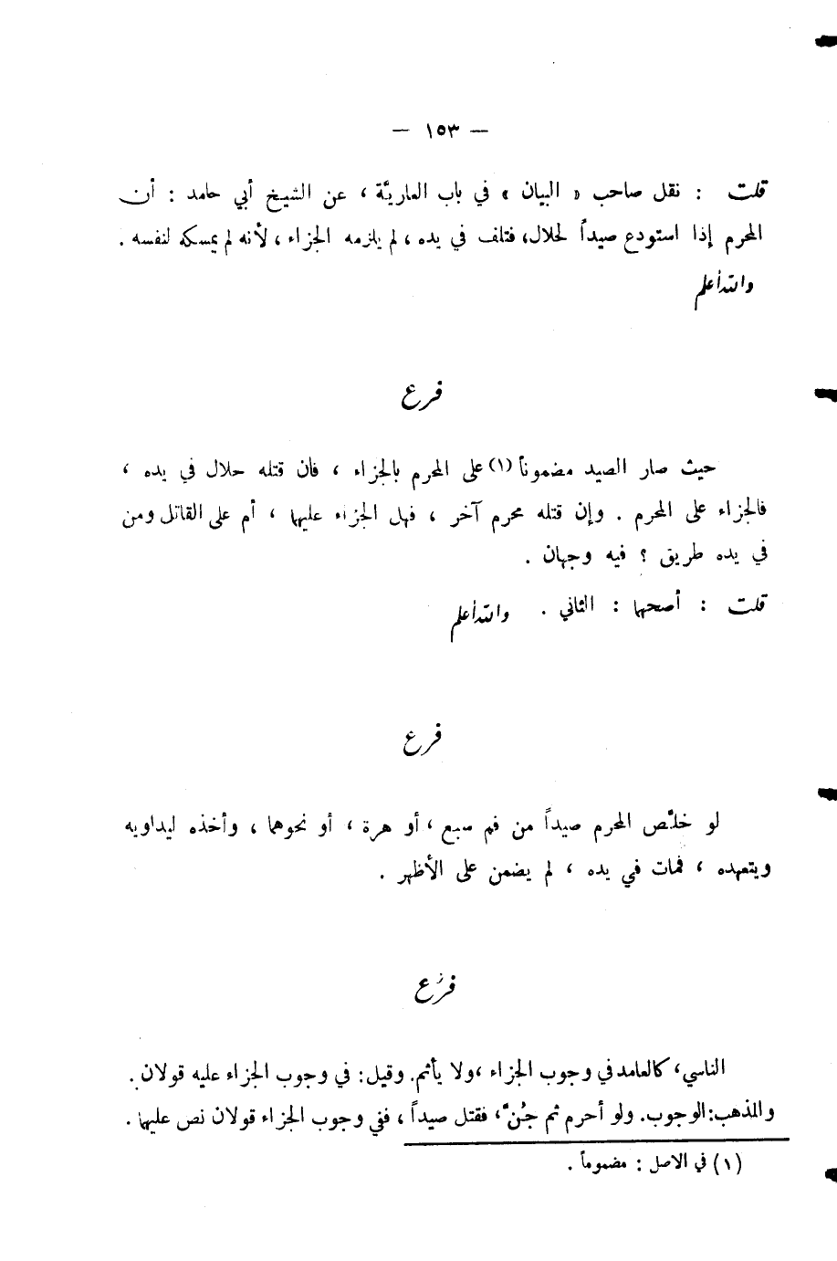 قُلْتُ: نَقَلَ صَاحِبُ «الْبَيَانِ» فِي بَابِ الْعَارِيَةِ، عَنِ الشَّيْخِ أَبِي حَامِدٍ: أَنَّ الْمُحْرِمَ إِذَا اسْتَوْدَعَ صَيْدًا لِحَلَالٍ، فَتَلَفَ فِي يَدِهِ، لَمْ يَلْزَمْهُ الْجَزَاءُ؛ لِأَنَّهُ لَمْ يَمْسِكْهُ لِنَفْسِهِ. وَاللَّهُ أَعْلَمُ.