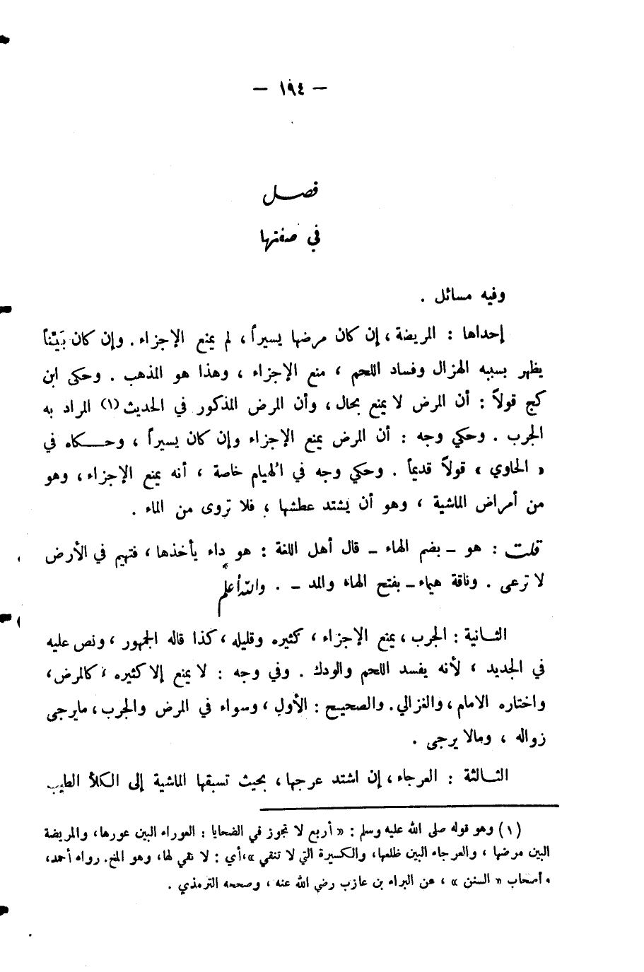 إِحْدَاهَا: الْمَرِيضَةُ، إِنْ كَانَ مَرَضُهَا يَسِيرًا، لَمْ يَمْنَعِ الْإِجْزَاءَ وَإِنْ كَانَ بَيِّنًا يَظْهَرُ بِسَبَبِهِ الْهُزَالُ وَفَسَادُ اللَّحْمِ، مَنَعَ الْإِجْزَاءَ، وَهَذَا هُوَ الْمَذْهَبُ. وَحَكَى ابْنُ كَجٍّ قَوْلًا: أَنَّ الْمَرَضَ لَا يَمْنَعُ بِحَالٍ، وَأَنَّ الْمَرَضَ الْمَذْكُورَ فِي الْحَدِيثِ الْمُرَادِ بِهِ الْجَرَبُ. وَحُكِيَ وَجْهٌ: أَنَّ الْمَرَضَ يَمْنَعُ الْإِجْزَاءَ وَإِنْ كَانَ يَسِيرًا، وَحَكَاهُ فِي «الْحَاوِي» قَوْلًا قَدِيمًا. وَحُكِيَ وَجْهٌ فِي الْهُيَامِ خَاصَّةً، أَنَّهُ يَمْنَعُ الْإِجْزَاءَ، وَهُوَ مِنْ أَمْرَاضِ الْمَاشِيَةِ، وَهُوَ أَنْ يَشْتَدَّ عَطَشُهَا، فَلَا تُرْوَى مِنَ الْمَاءِ.