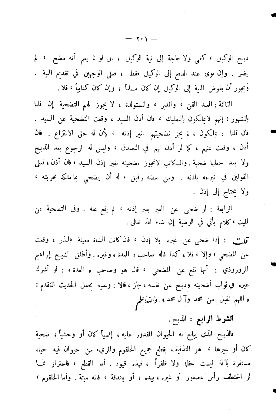 الشَّرْطُ الرَّابِعُ: الذَّبْحُ.