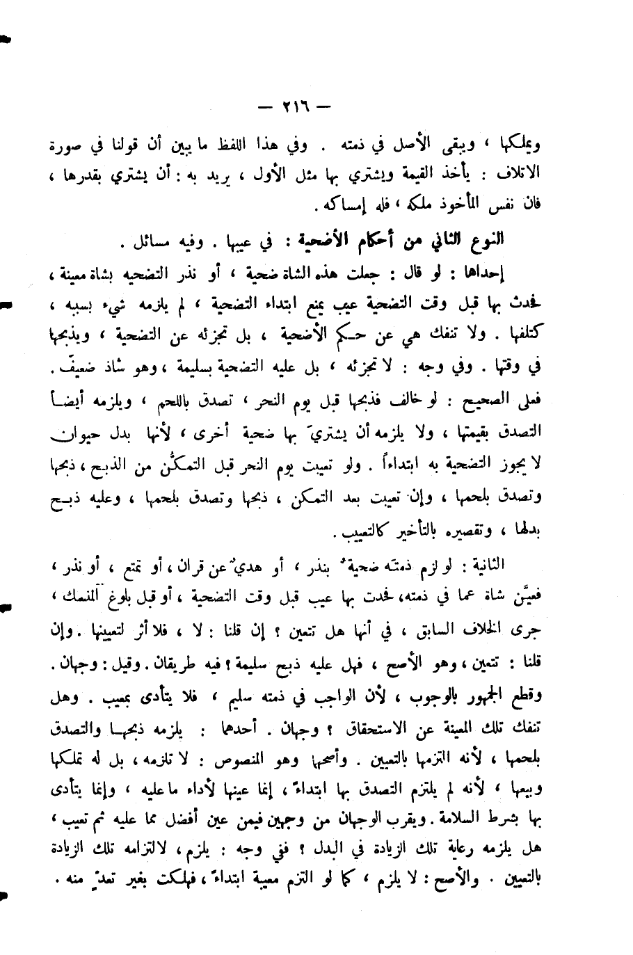 النَّوْعُ الثَّانِي مِنْ أَحْكَامِ الْأُضْحِيَّةِ: فِي عَيْبِهَا. وَفِيهِ مَسَائِلُ.