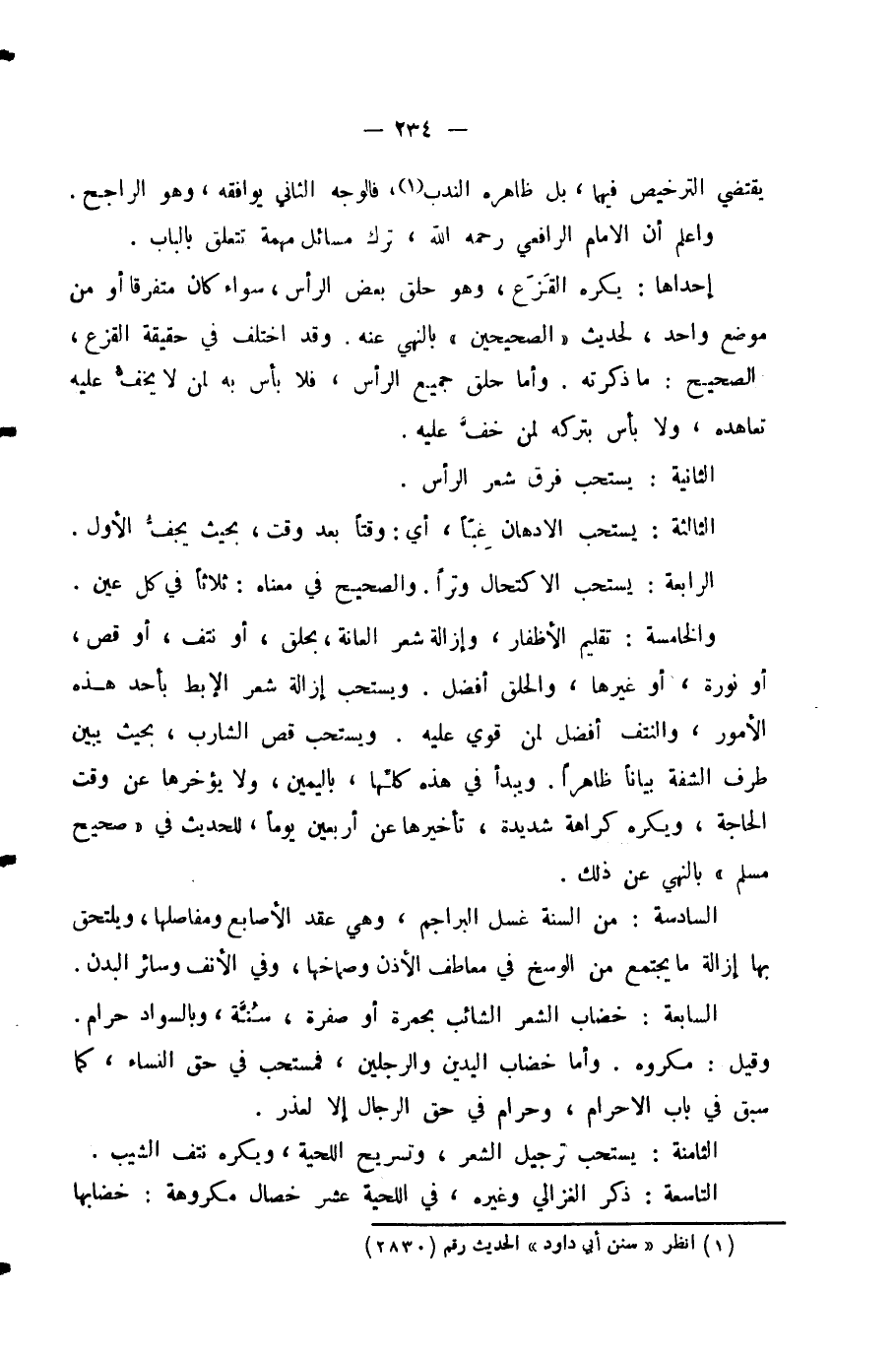 الثَّامِنَةُ: يُسْتَحَبُّ تَرْجِيلُ الشَّعْرِ، وَتَسْرِيحُ اللِّحْيَةِ، وَيُكْرَهُ نَتْفُ الشَّيْبِ.