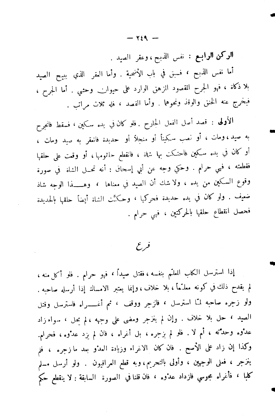 الرُّكْنُ الرَّابِعُ: نَفْسُ الذَّبْحِ، وَعَقْرُ الصَّيْدِ.