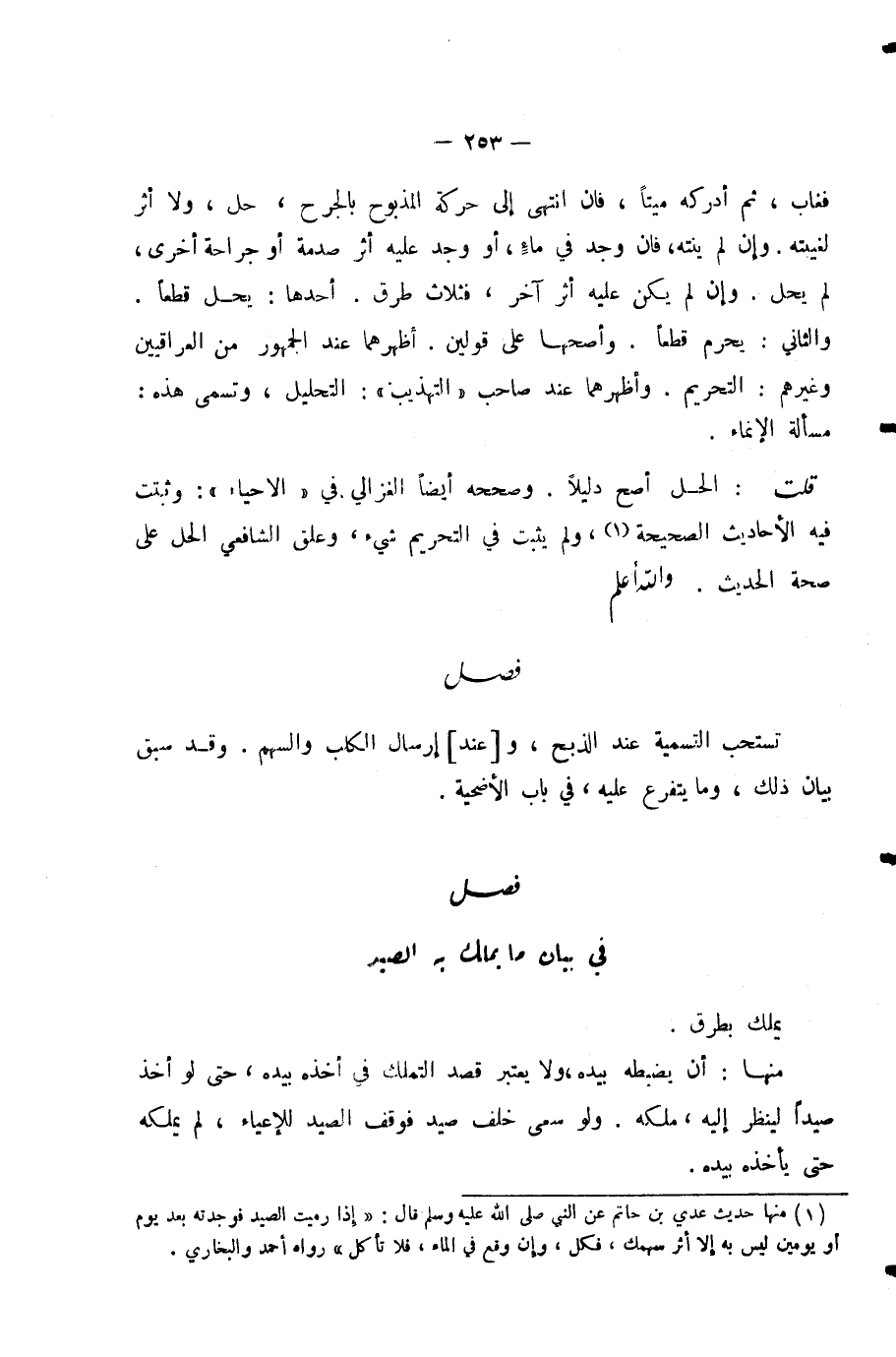 فِي بَيَانِ مَا يُمْلَكُ بِهِ الصَّيْدُ