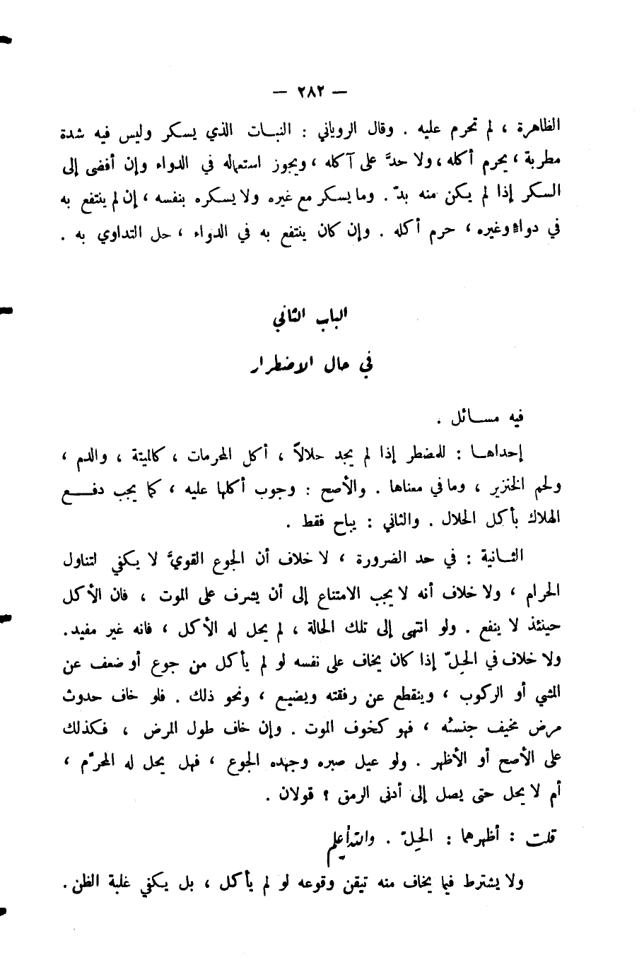 الْبَابُ الثَّانِي فِي حَالِ الِاضْطِرَارِ