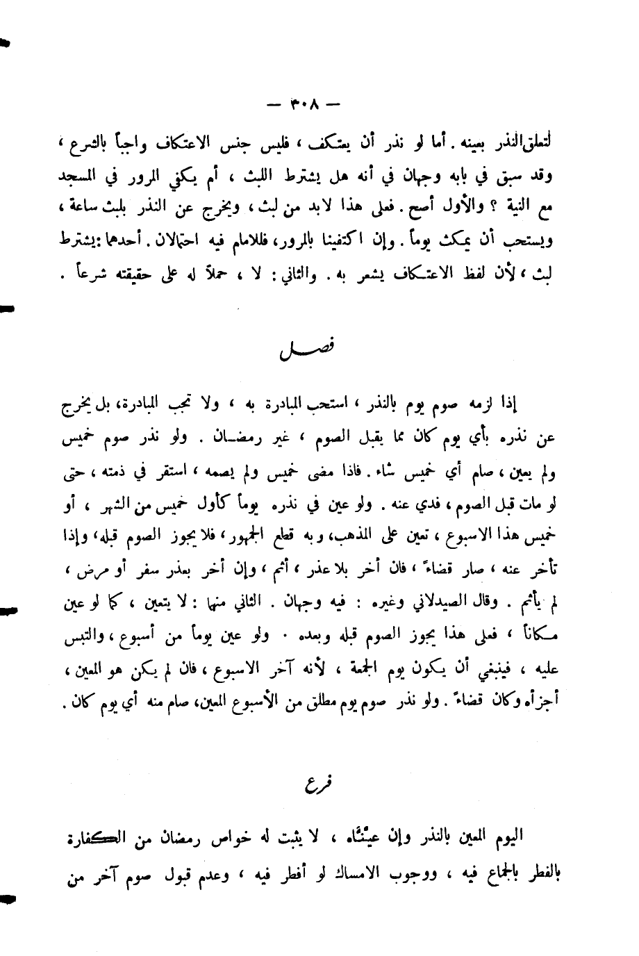 لِتَعَلُّقِ النَّذْرِ بِعَيْنِهِ. أَمَّا لَوْ نَذَرَ أَنْ يَعْتَكِفَ، فَلَيْسَ جِنْسُ الِاعْتِكَافِ وَاجِبًا بِالشَّرْعِ، وَقَدْ سَبَقَ فِي بَابِهِ وَجْهَانِ فِي أَنَّهُ هَلْ يُشْتَرَطُ اللَّبْثُ، أَمْ يَكْفِي الْمُرُورُ فِي الْمَسْجِدِ مَعَ النِّيَّةِ؟ وَالْأَوَّلُ أَصَحُّ. فَعَلَى هَذَا لَا بُدَّ مِنْ لَبْثٍ، وَيُخْرِجُ عَنِ النَّذْرِ بِلَبْثِ سَاعَةٍ، وَيُسْتَحَبُّ أَنْ يَمْكُثَ يَوْمًا. وَإِنِ اكْتَفَيْنَا بِالْمُرُورِ، فَلِلْإِمَامِ فِيهِ احْتِمَالَانِ.