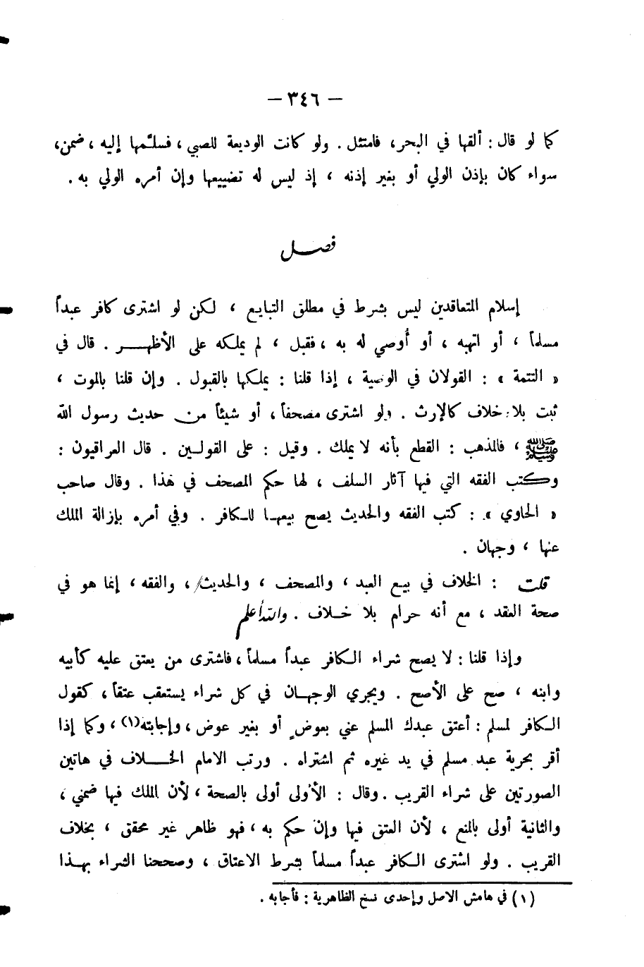 قُلْتُ: الْخِلَافُ فِي بَيْعِ الْعَبْدِ، وَالْمُصْحَفِ، وَالْحَدِيثِ، وَالْفِقْهِ، إِنَّمَا هُوَ فِي صِحَّةِ الْعَقْدِ، مَعَ أَنَّهُ حَرَامٌ بِلَا خِلَافٍ. وَاللَّهُ أَعْلَمُ.