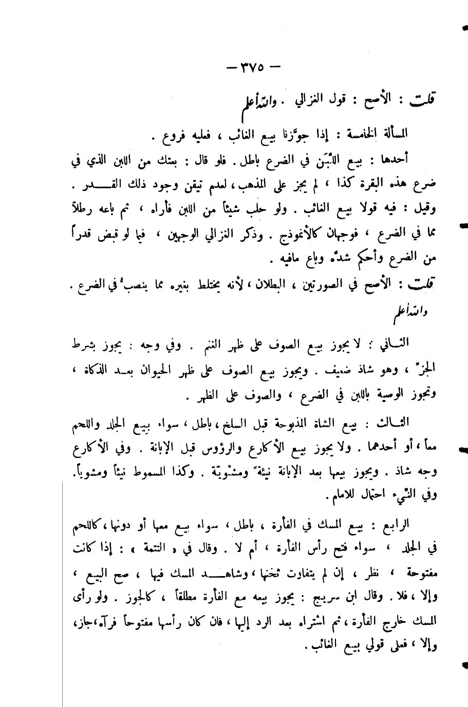 قُلْتُ: الْأَصَحُّ: قَوْلُ الْغَزَالِيِّ. وَاللَّهُ أَعْلَمُ.