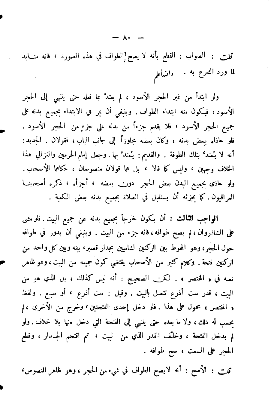 قُلْتُ: الصَّوَابُ: الْقَطْعُ بِأَنَّهُ لَا يَصِحُّ الطَّوَافُ فِي هَذِهِ الصُّورَةِ، فَإِنَّهُ مُنَابِذٌ لِمَا وَرَدَ الشَّرْعُ بِهِ. - وَاللَّهُ أَعْلَمُ -.
