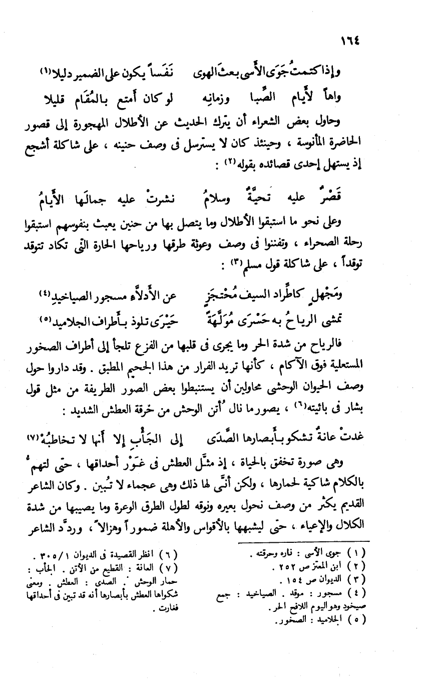 (¬7) العانة: القطيع من الأتن. الجأب: حمار الوحش. الصدى: العطش. ومعنى شكواها العطش بأبصارها أنه قد تبين فى أحداقها فغارت.