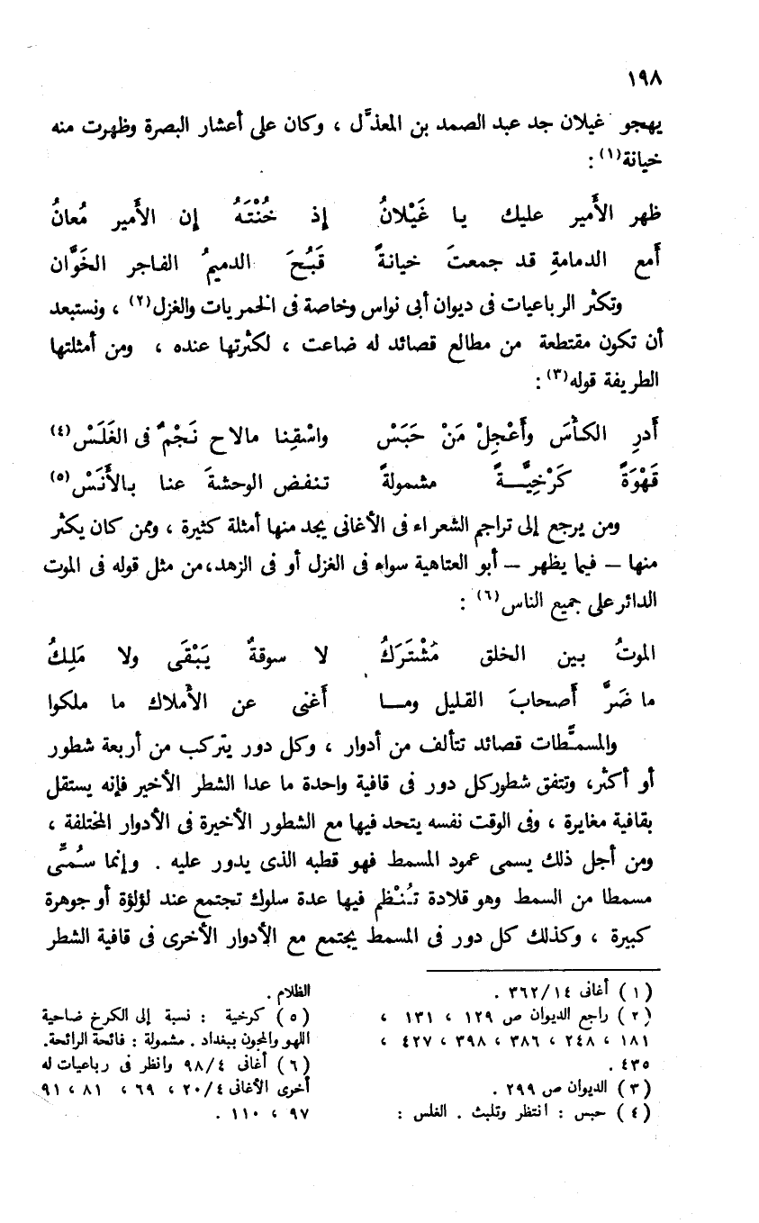 (¬6) أغانى 4/ 98 وانظر فى رباعيات له أخرى الأخانى 4/ 20، 69، 81، 91، 97، 110.