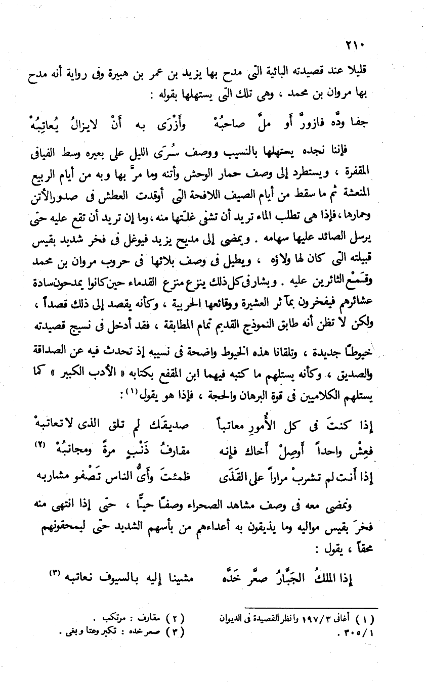 قليلا عند قصيدته البائية التى مدح بها يزيد بن عمر بن هبيرة وفى رواية أنه مدح بها مروان بن محمد، وهى تلك التى يستهلها بقوله:
