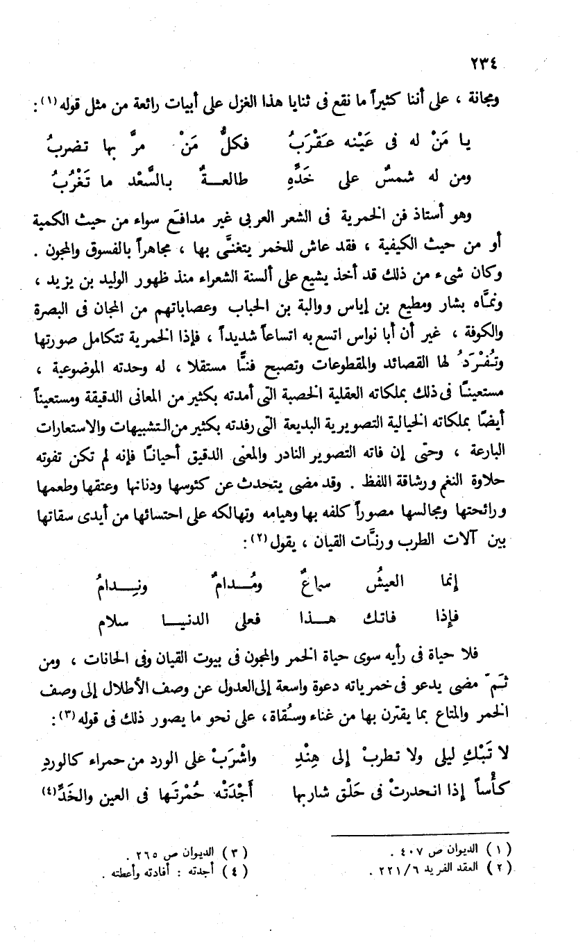 ومجانة، على أننا كثيرا ما نقع فى ثنايا هذا الغزل على أبيات رائعة من مثل قوله (¬1):