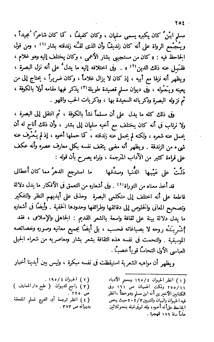 (¬4) انظر ترجمة أبى الفرج لمسلم الملحقة بديوانه ص 373.