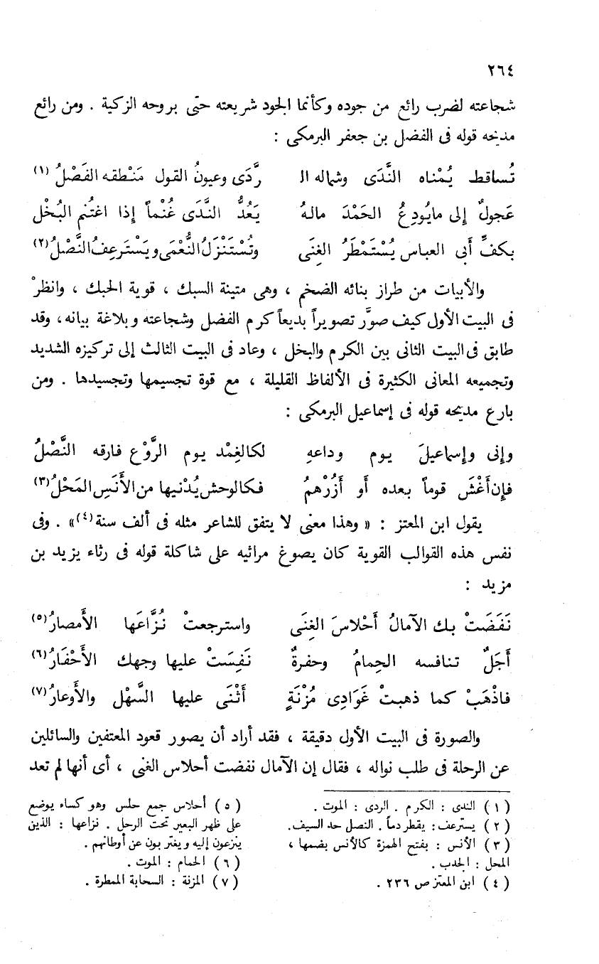 شجاعته لضرب رائع من جوده وكأنما الجود شريعته حتى بروحه الزكية. ومن رائع مديحه قوله فى الفضل بن جعفر البرمكى:
