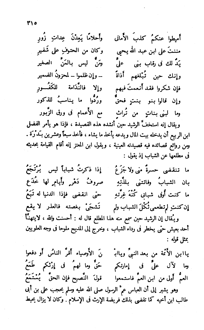 وما لآل علىّ فى إمارتكم … حقّ وما لهم فى إرثكم طمع