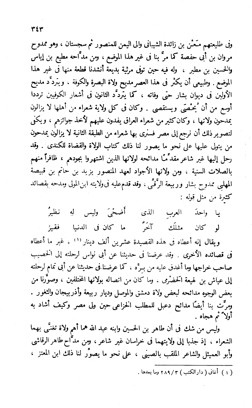 وليس من شك فى أن طاهر بن الحسين وابنه عبد الله هما أهم ولاة تغنّى بهما الشعراء، إذ جذبا إلى ولايتهما فى خراسان غير شاعر، ومن مدّاح طاهر الرقاشى وأبو العميثل والشاعر الملقب بالصينى، على نحو ما يصوّر لنا ذلك ابن المعتز،