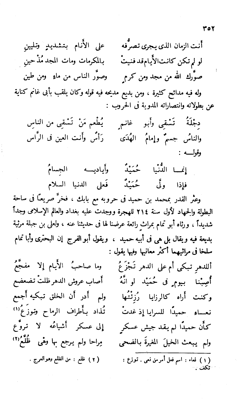فإذا ولّى حميد … فعلى الدنيا السلام