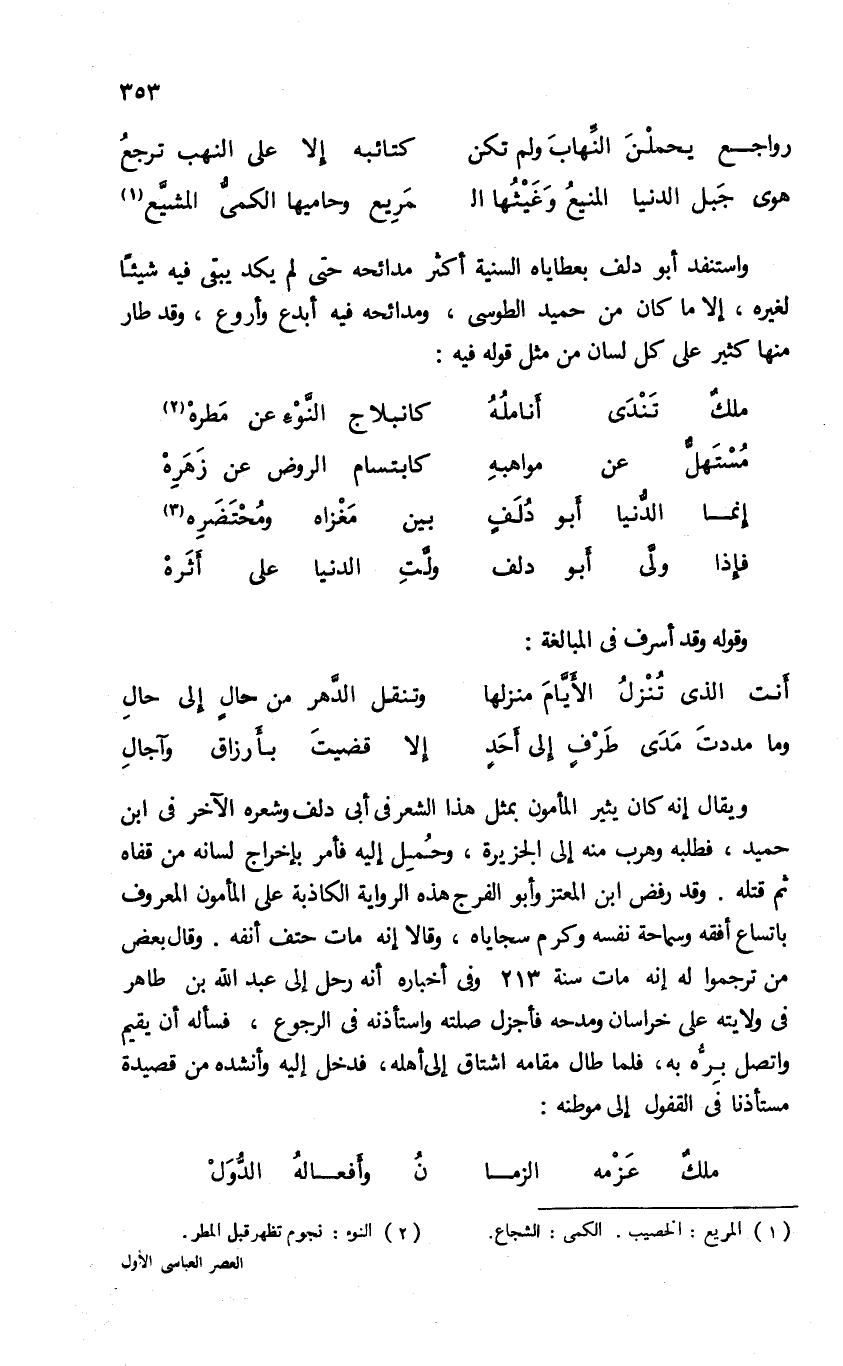 فإذا ولّى أبو دلف … ولّت الدنيا على أثره