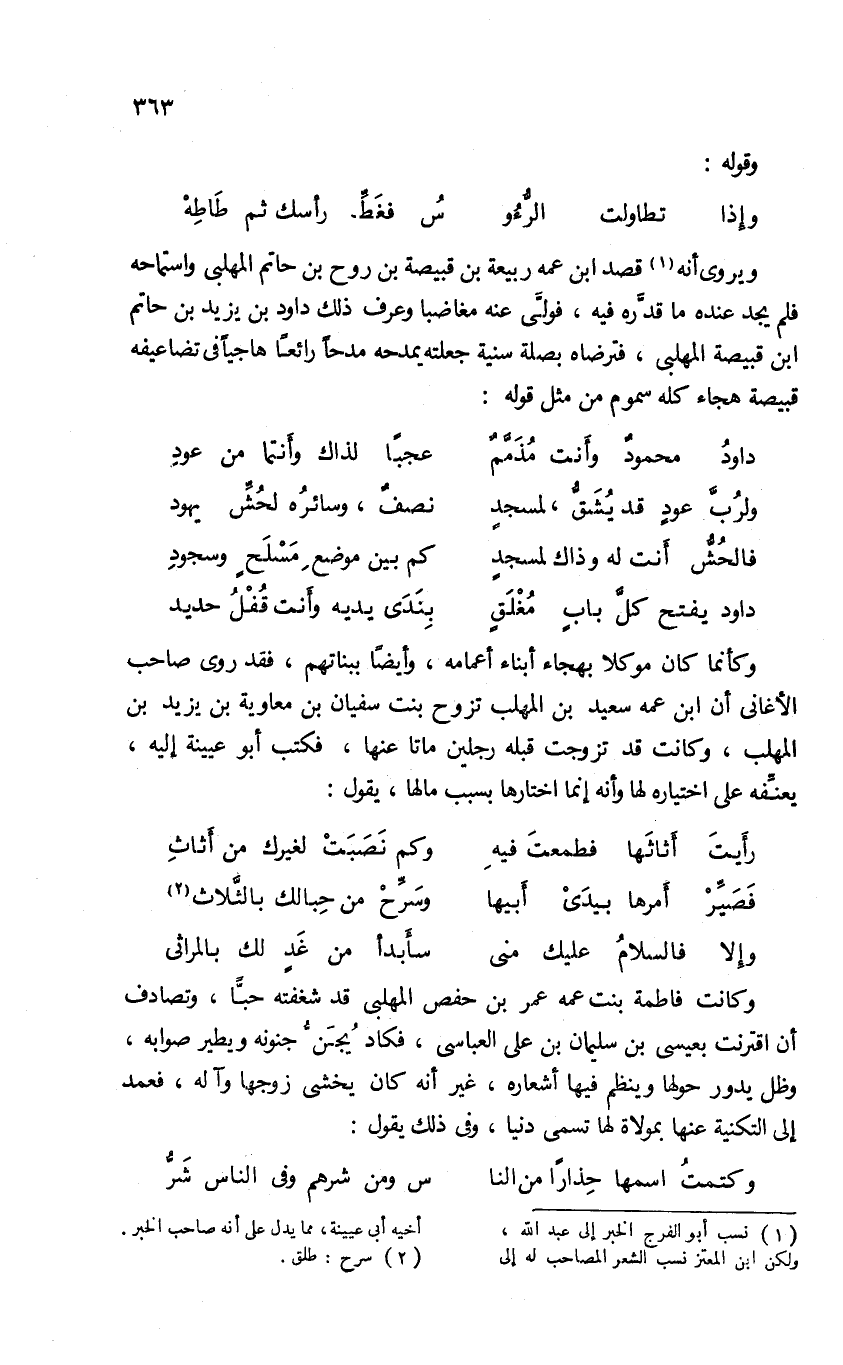 (¬1) نسب أبو الفرج الخبر إلى عبد الله، ولكن ابن المعتز نسب الشعر المصاحب له إلى أخيه أبى عيينة، مما يدل على أنه صاحب الخبر.