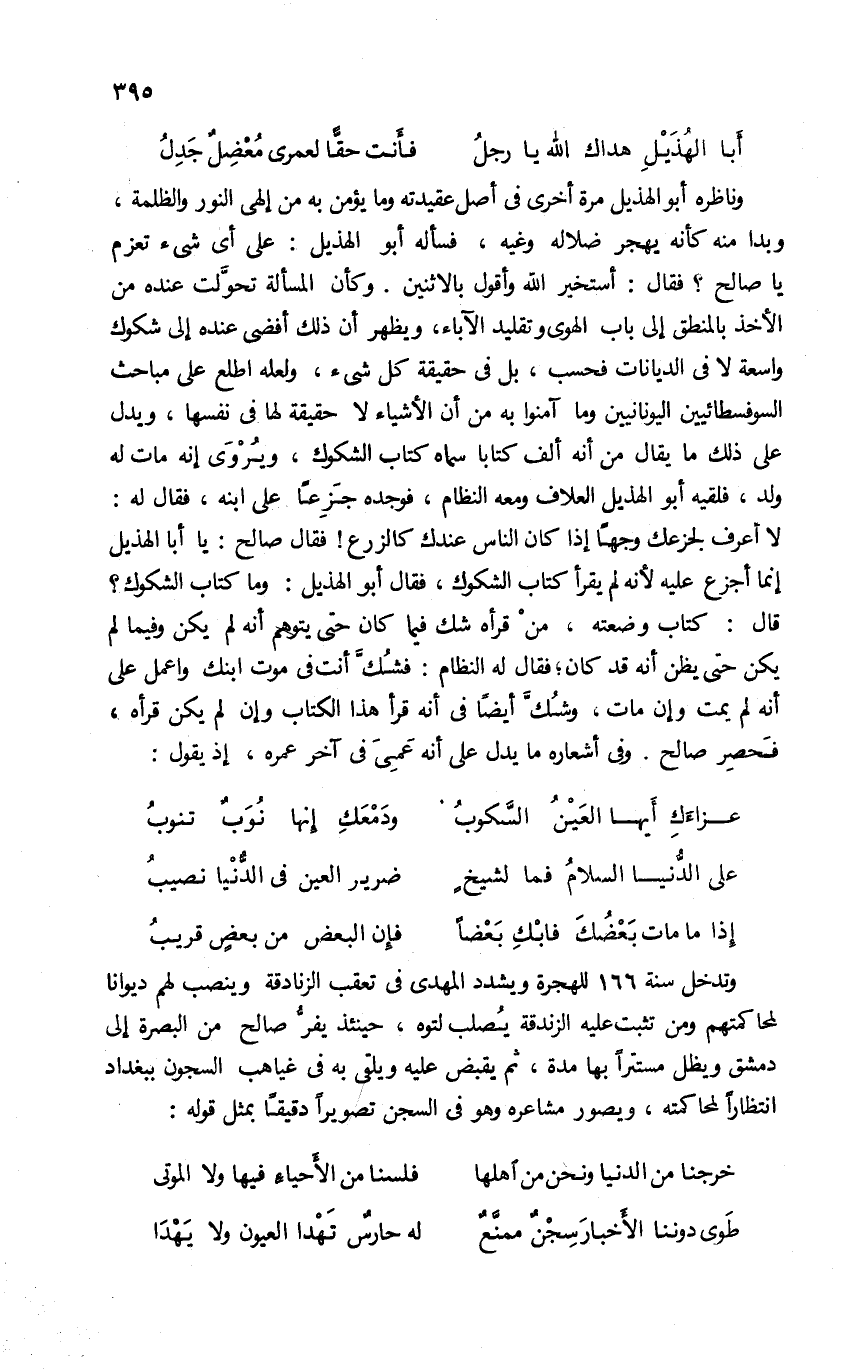 أبا الهذيل هداك الله يا رجل … فأنت حقّا لعمرى معضل جدل