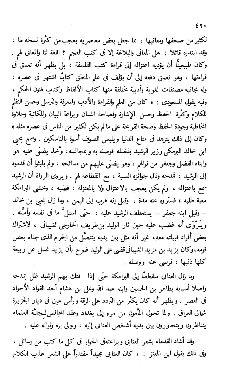 لكثير من صحفها ومعانيها، مما جعل بعض معاصريه يعجب من كثرة نسخه لها، وقد ابتدره قائلا: هل المعانى والبلاغة إلا فى كتب العجم؟ اللغة لنا والمعانى لهم.