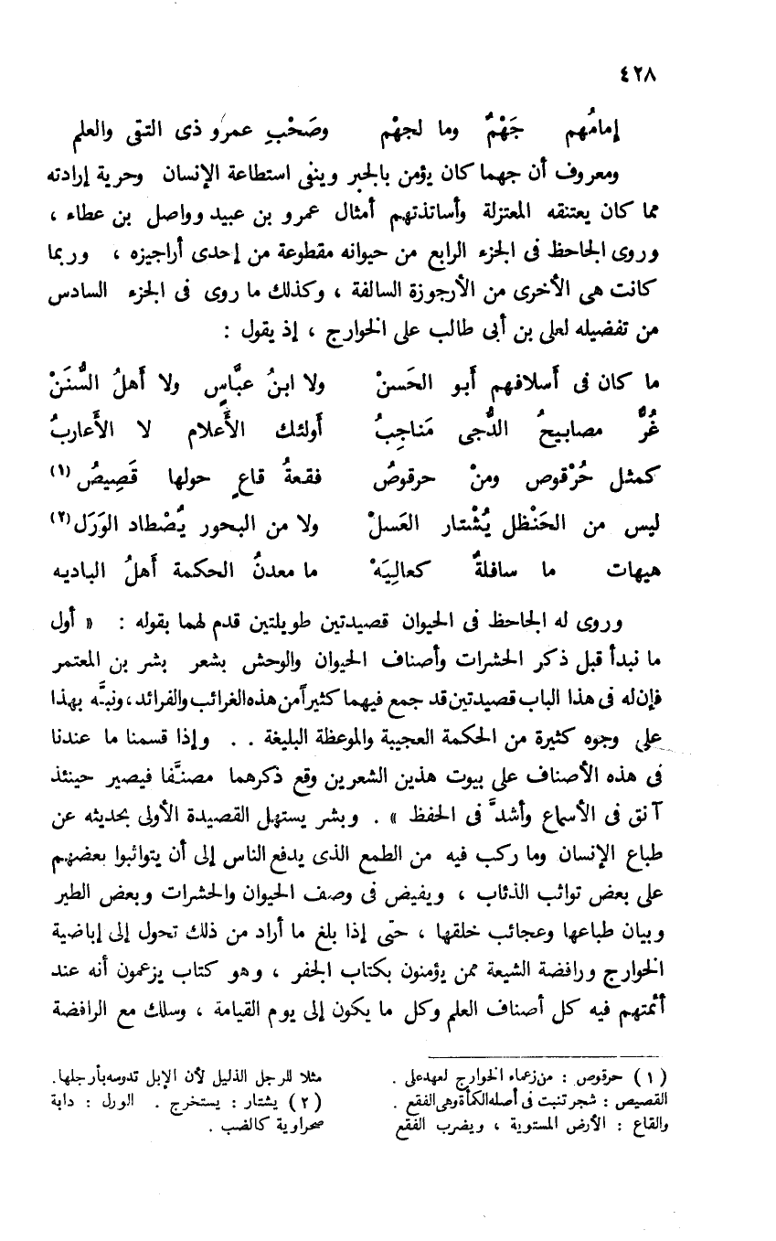 (¬1) حرقوص: من زعماء الخوارج لعهد على القصيص: شجر تنبت فى أصله الكمأة وهى الفقع. والقاع: الأرض المستوية، ويضرب الفقع مثلا للرجل الذليل لأن الإبل تدوسه بأر جلها.