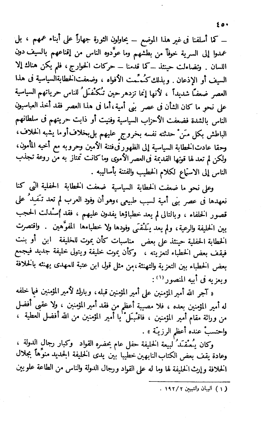 (¬1) البيان والتبيين 2/ 192.