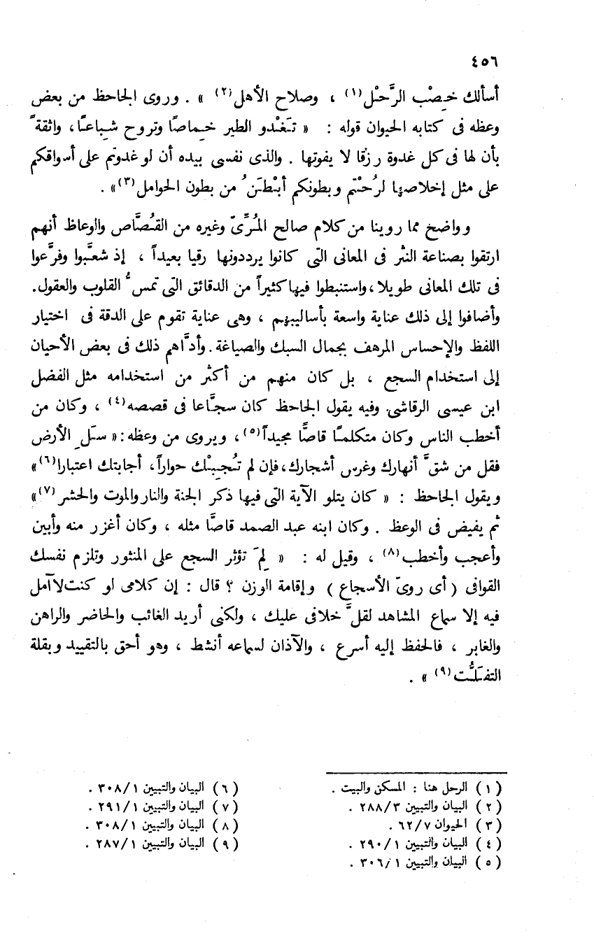 وأضافوا إلى ذلك عناية واسعة بأساليبهم، وهى عناية تقوم على الدقة فى اختيار اللفظ والإحساس المرهف بجمال السبك والصياغة. وأدّاهم ذلك فى بعض الأحيان إلى استخدام السجع، بل كان منهم من أكثر من استخدامه مثل الفضل ابن عيسى الرقاشى وفيه يقول الجاحظ كان سجّاعا فى قصصه (¬4)، وكان من أخطب الناس وكان متكلما قاصّا مجيدا (¬5)، ويروى من وعظه: «سل الأرض فقل من شقّ أنهارك وغرس أشجارك، فإن لم تجبك حوارا، أجابتك اعتبارا (¬6)» ويقول الجاحظ: «كان يتلو الآية التى فيها ذكر الجنة والنار والموت والحشر (¬7)» ثم يفيض فى الوعظ. وكان ابنه عبد الصمد قاصّا مثله، وكان أغزر منه وأبين وأعجب وأخطب (¬8)، وقيل له: «لم تؤثر السجع على المنثور وتلزم نفسك القوافى (أى روىّ الأسجاع) وإقامة الوزن؟ قال: إن كلامى لو كنت لا آمل فيه إلا سماع المشاهد لقلّ خلافى عليك، ولكنى أريد الغائب والحاضر والراهن والغابر، فالحفظ إليه أسرع، والآذان لسماعه أنشط، وهو أحق بالتقييد وبقلة التفلّت (¬9)».