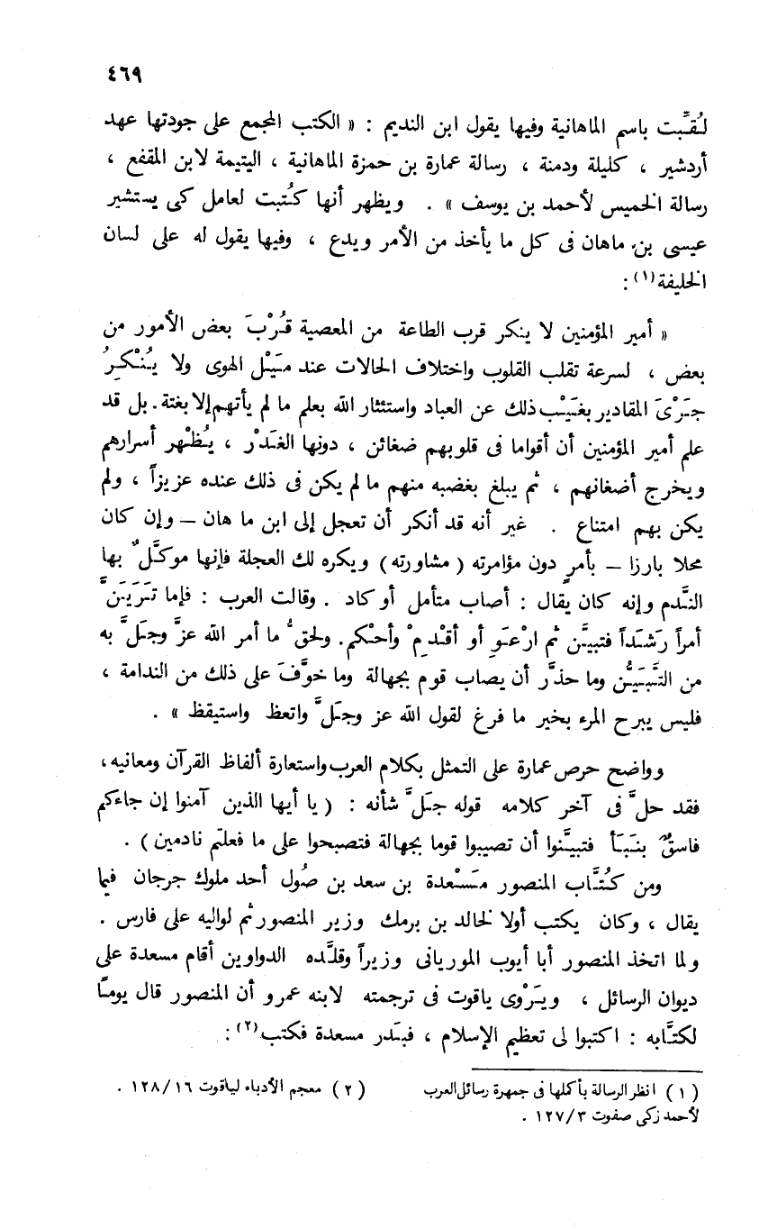 (¬1) انظر الرسالة بأكلها فى جمهرة رسائل العرب لأحمد زكى صفوت 3/ 127.
