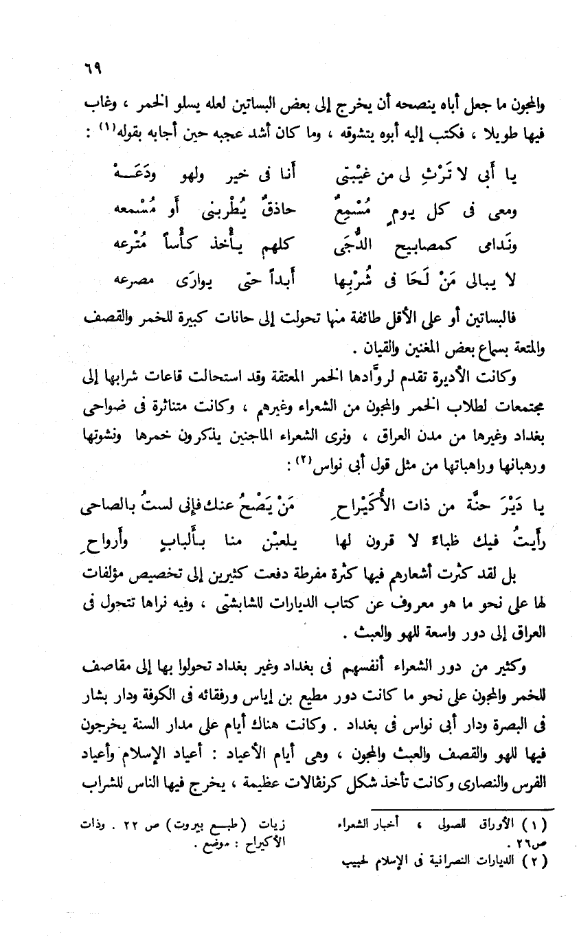 بل لقد كثرت أشعارهم فيها كثرة مفرطة دفعت كثيرين إلى تخصيص مؤلفات لها على نحو ما هو معروف عن كتاب الديارات للشابشتى، وفيه نزاها تتحول فى العراق إلى دور واسعة للهو والعبث.