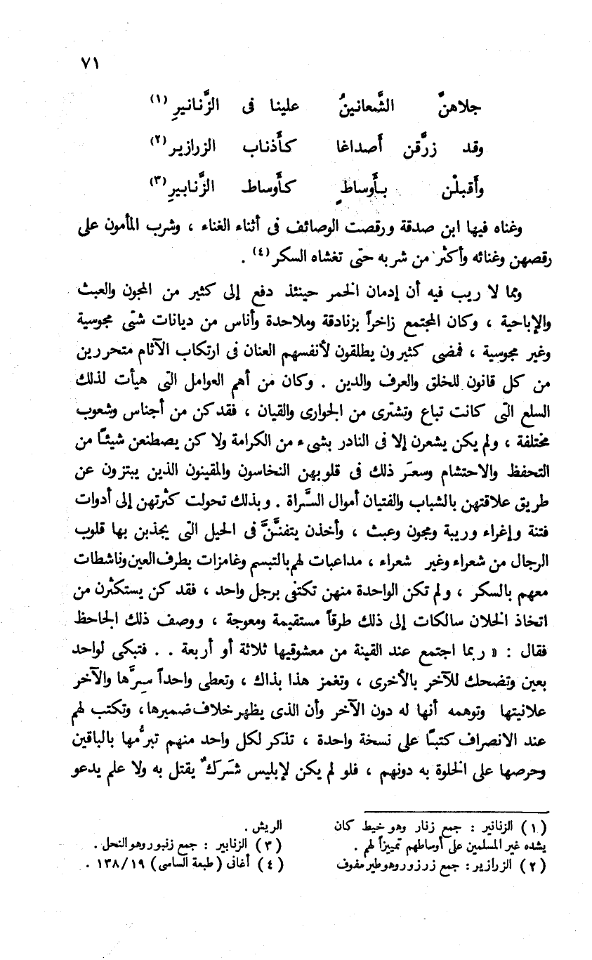 (¬1) الزنانير: جمع زنار وهو خيط كان يشده غير المسلمين على أوساطهم تمييزا لهم.