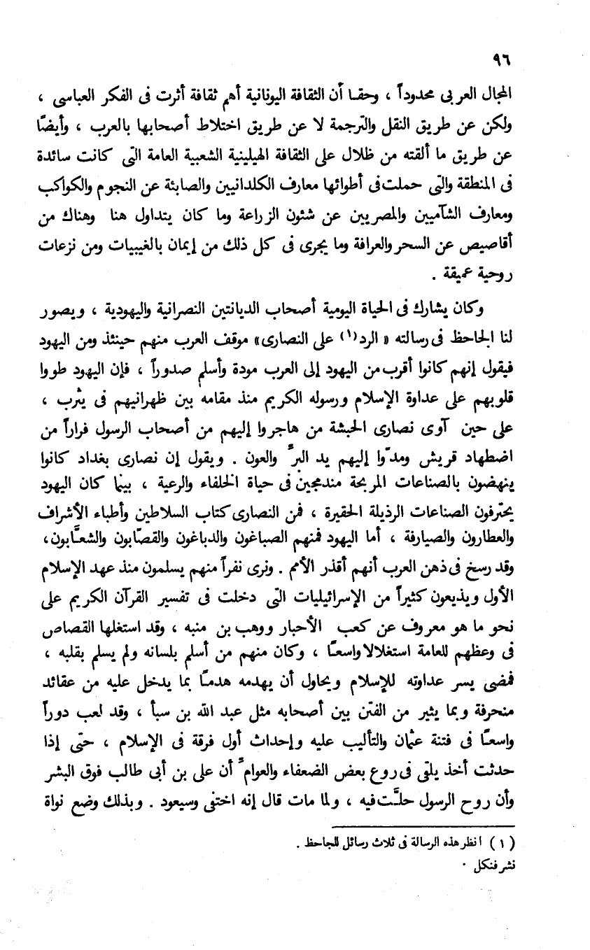 (¬1) انظر هذه الرسالة فى ثلاث رسائل للجاحظ نشر فنكل.
