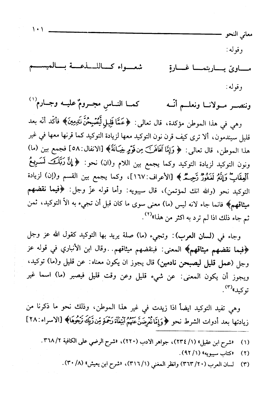 (¬1) شرح ابن عقيل 1/ 234، جواهر الأدب 220، شرح الرضي على الكافية 2/ 368