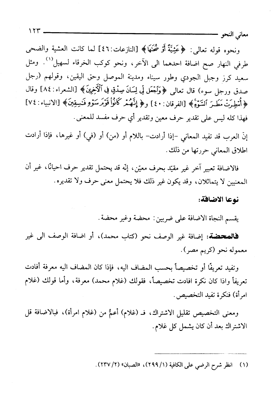 (¬1) انظر شرح الرضي على الكافية 1/ 299، الصبان 2/ 237