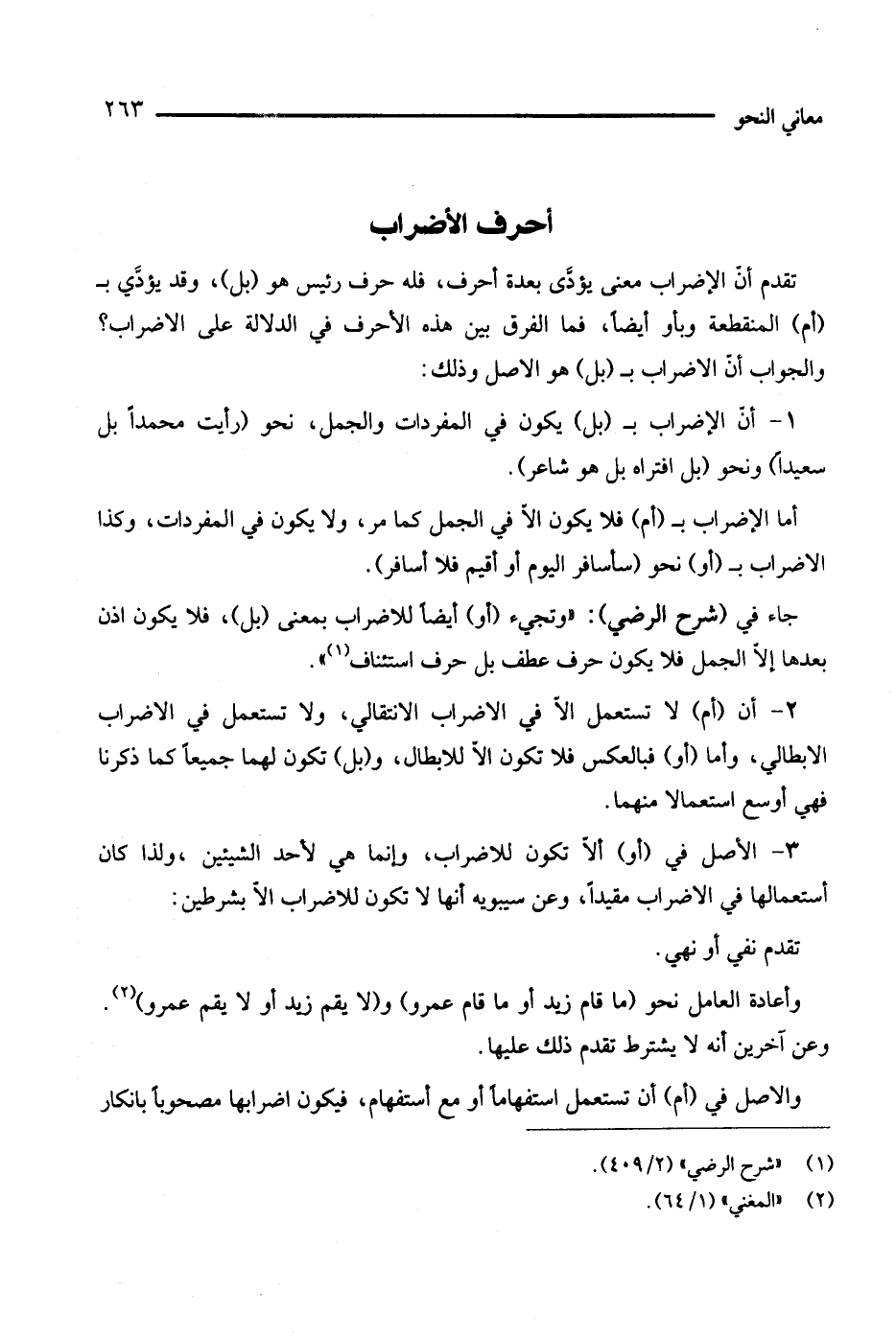 3 - الأصل في (أو) ألا تكون للاضراب، وإنما هي لأحد الشيئين، ولذا كان استعمالها في الاضراب مقيدًا، وعن سيبويه أنها لا تكون للاضراب إلا بشرطين:
