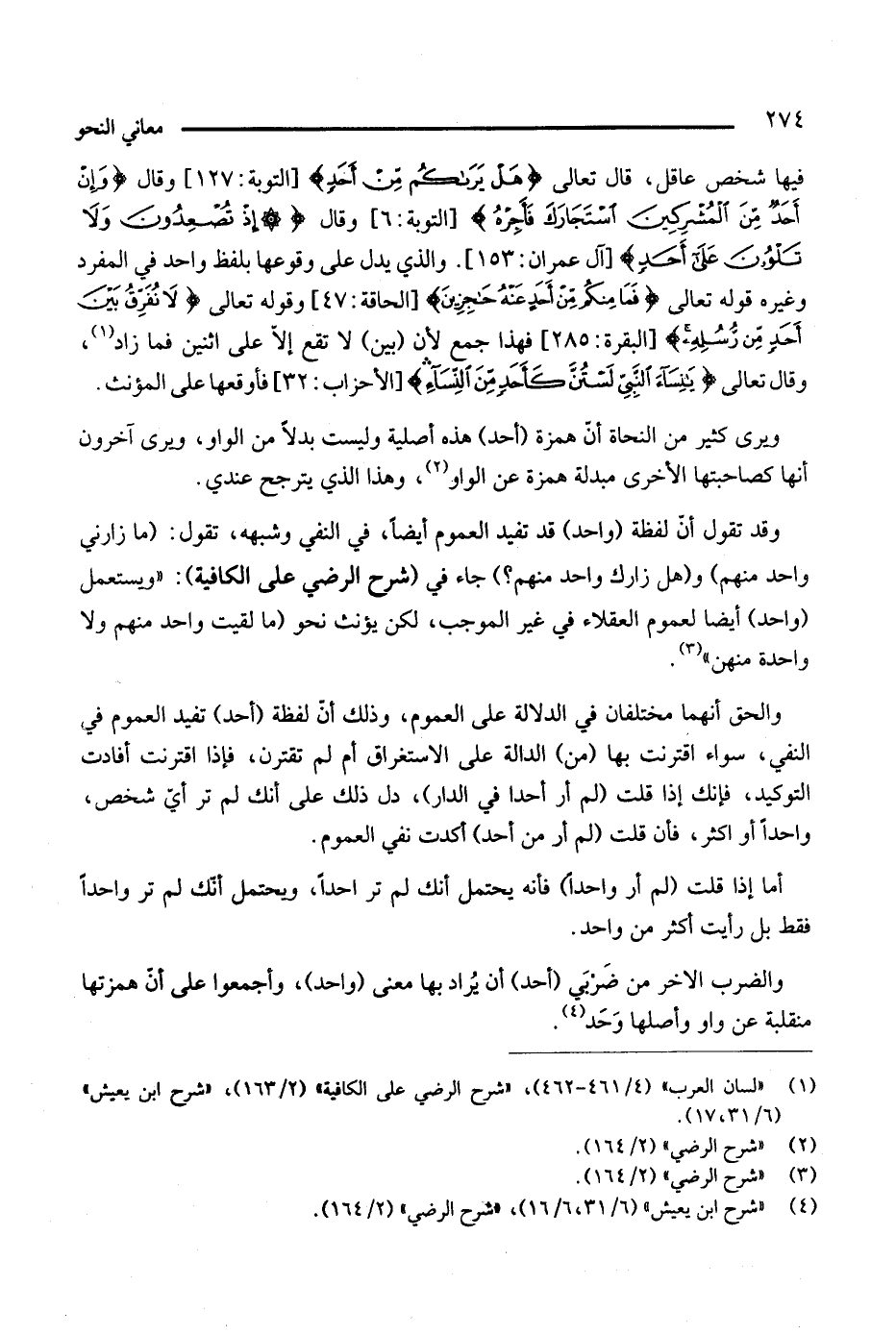 ويرى كثير من النحاة أن همزة (أحد) هذه أصلية وليست بدلا من الواو، ويرى آخرون أنها كصاحبتها الأخرى مبدلة همزة عن الواو (¬2).، وهذا الذي يترجح عندي.