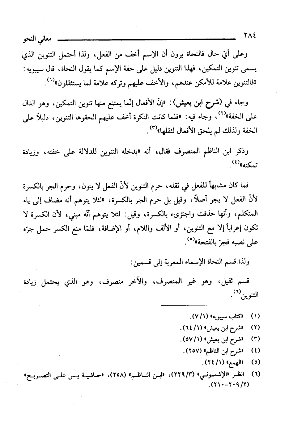 وجاء في (شرح ابن يعيش): " إن الأفعال إنما يمتنع منها تنوين التمكين، وهو الدال على الخفة (¬2). وجاء في (فلما كانت النكرة أخف عليهم الحقوها التنوين، دليلا على الخفة ولذلك لم يلحق الأفعال لثقلها (¬3).